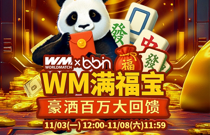 - 活动游戏:WM电子 - 发发麻将、发发致富、太空大爆炸、法老之书豪华版、熊猫满福宝、迪斯可宝贝。